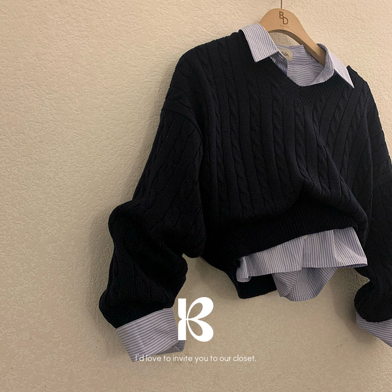 [MADE/레이어드!]에드 루즈핏 스트라이프 크롭 셔츠