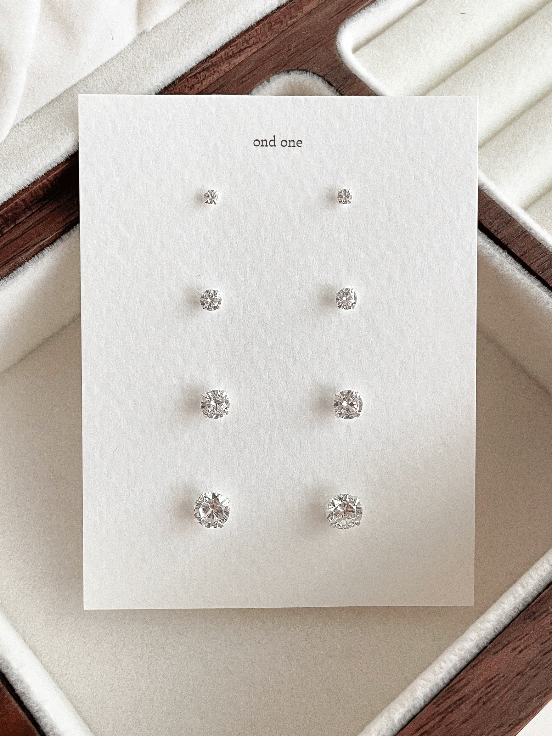 [925silver]심플 크리 라운드 데일리 베이직 큐빅 귀걸이(4size)
