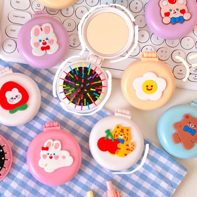 미니거울 접이식거울 거울선물 손거울 미니 브러쉬 빗 손거울 귀여운 캐릭터 접이식 거울 손거울제작