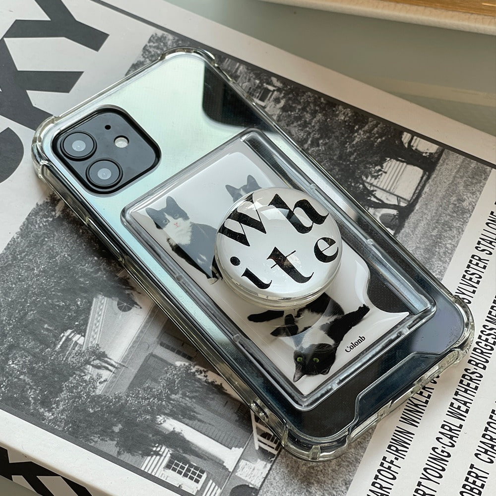 [콜론비] 구슬톡세트 화이트 문구 . 투명 범퍼 교통 포토 카드 수납 아이폰 핸드폰 케이스 커플 12 13 미니 14 15 16 프로 맥스 갤럭시 S21 S22 S23 S24