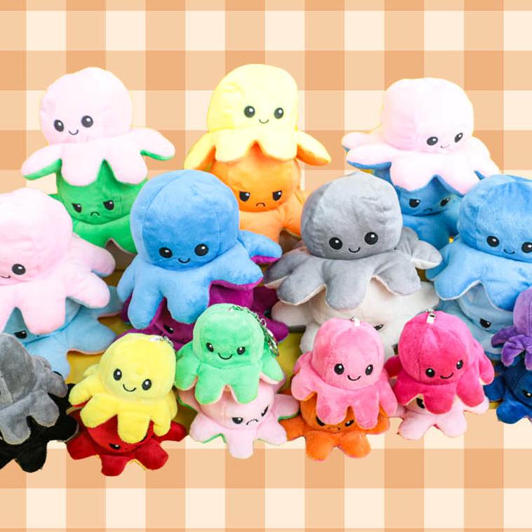 귀여운 리버시블 양면 문어 감정인형 3타입 - 문어인형 동물 봉제인형 친구선물 인형키링 열쇠고리 가방고리 선물인형 대왕문어 표정 감정 미니인형