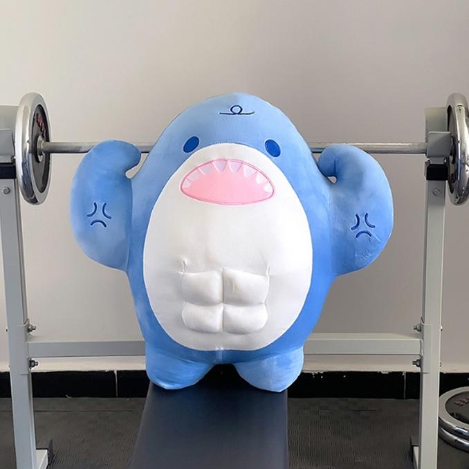 몸짱 근육 상어 안고자는 인형 쿠션 - 동물 상어인형 복근 근육인형 헬스 헬창 몸짱 웃긴 벌크업인형 대형인형쿠션 재밌는 선물 인테리어 남친선물