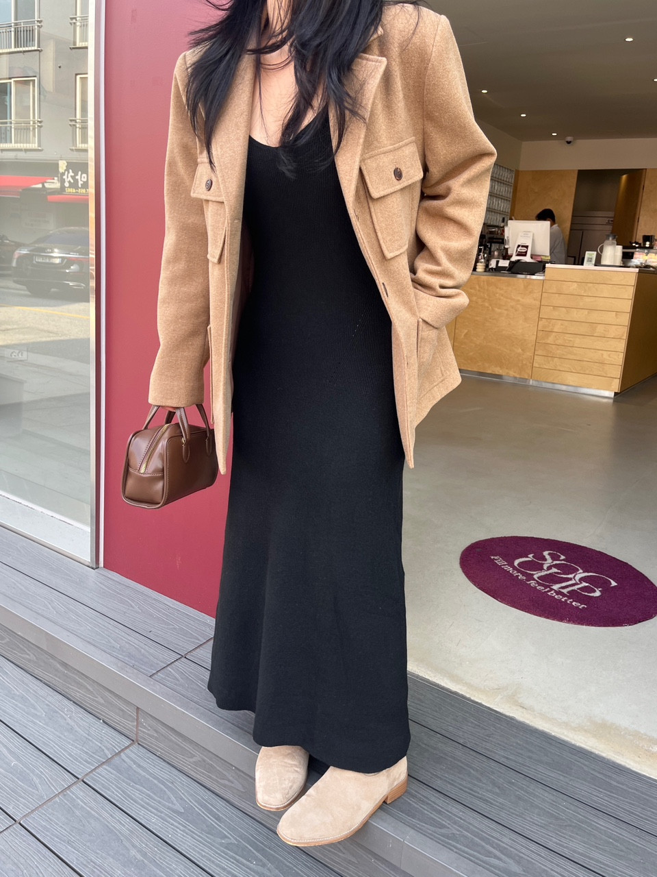 [로웰샵] 메들 여성 겨울 베이직 브이넥 니트 롱 원피스