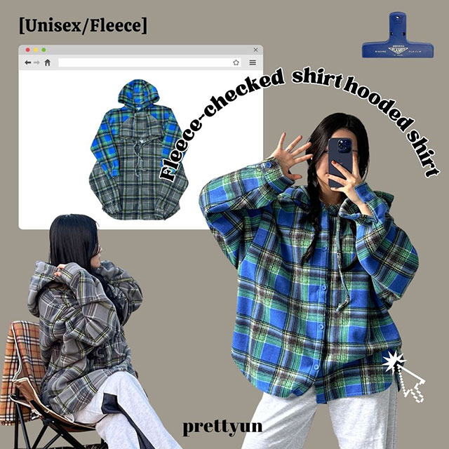 [UNISEX/기모] 후리스 체크 남방 후드 셔츠 - 2color