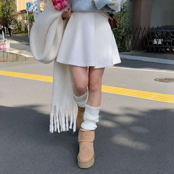 [3color⛄] 도톰 플레어 A라인 미니스커트 하이웨스트 봄 모직 치마