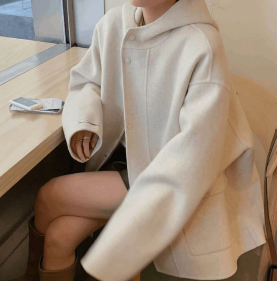 ipdda 입따 컬러추가 울100 후드 오버핏 박시 울 하프 자켓 핸드메이드 빅사이즈 포켓 캐시울 겨울 코트