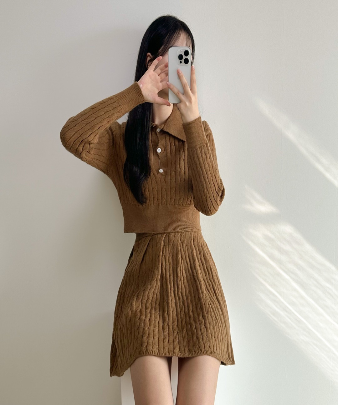 [투피스/코디완성/세트가격] 꽈배기 니트 티 플리츠 니트 치마 스커트 세트 투피스