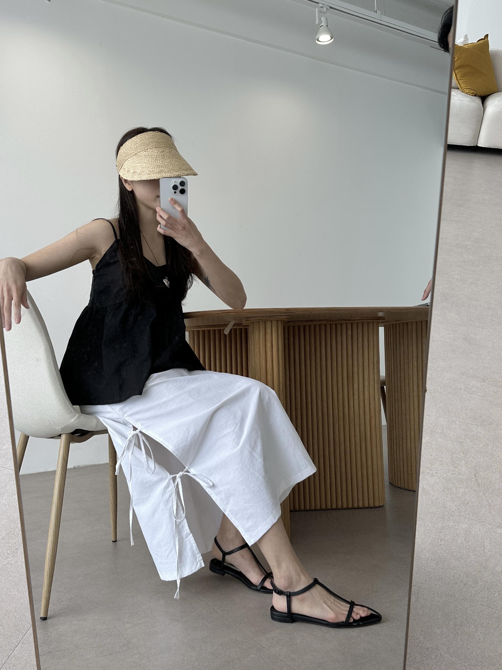 리본매듭 사이드 옆트임 롱스커트 나일론 바스락 뒷밴딩