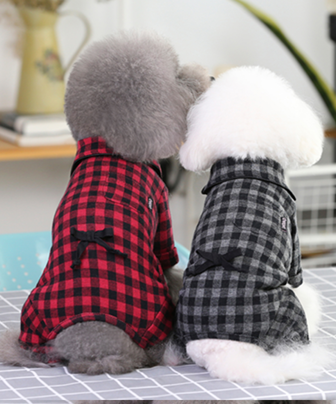 [🚚당일발송🚚] 강아지 봄 체크 파자마 올인원 외출복 반려동물 강아지옷 잠옷