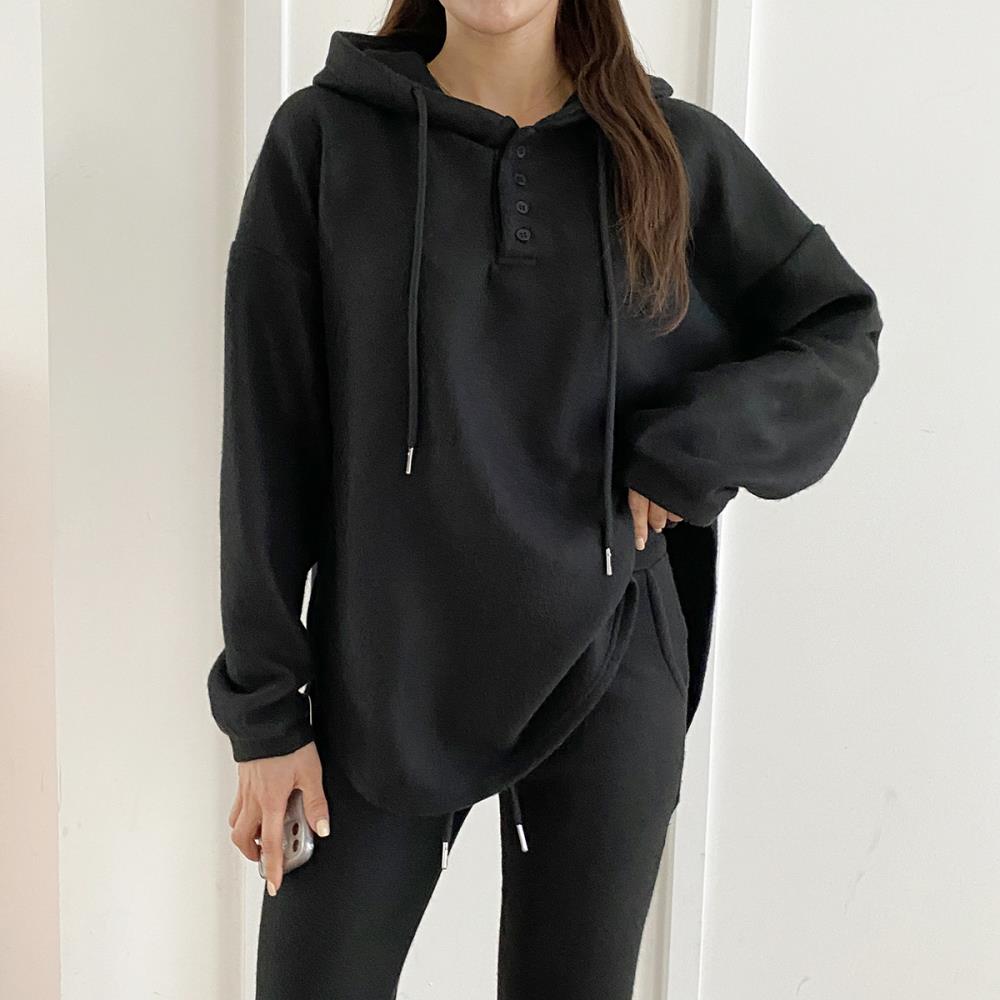 여자 오버핏 언발 후드티 슬림 컷팅 부츠컷 바지 세트