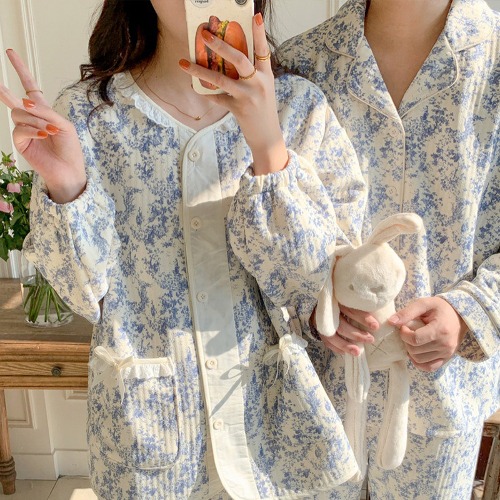 1+1 수채화 누빔 커플 파자마 수면 잠옷 세트