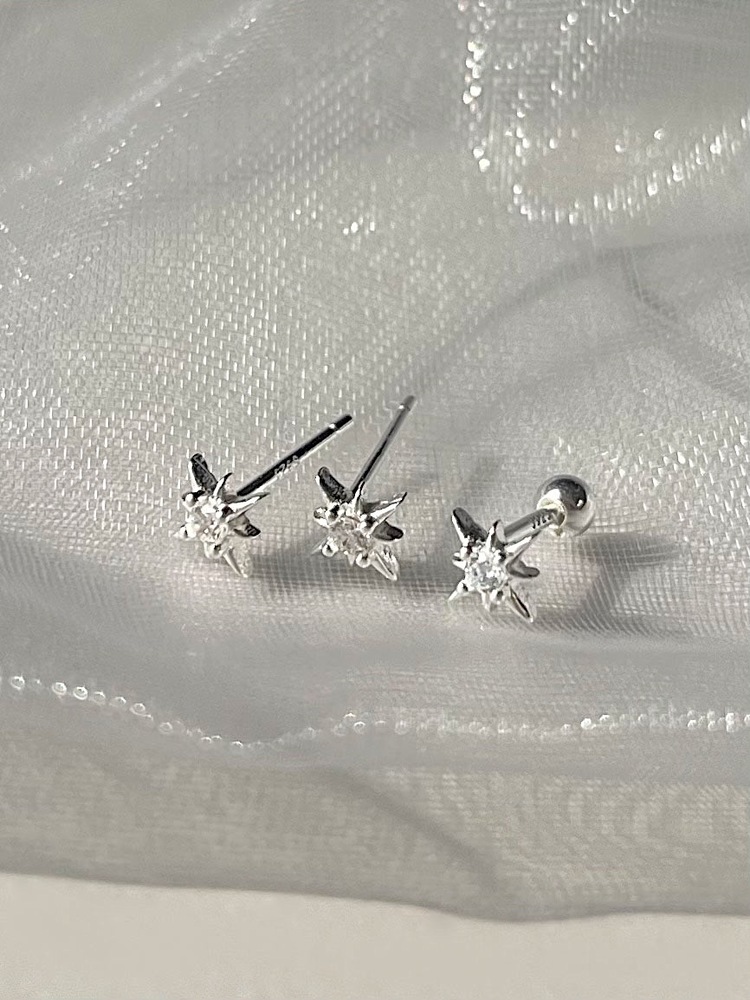[실버925] 미들 큐빅 스파클 피어싱 귀걸이 (2type)