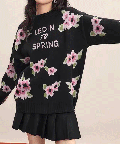 아이돌 무궁화 블랙 플로랄 니트