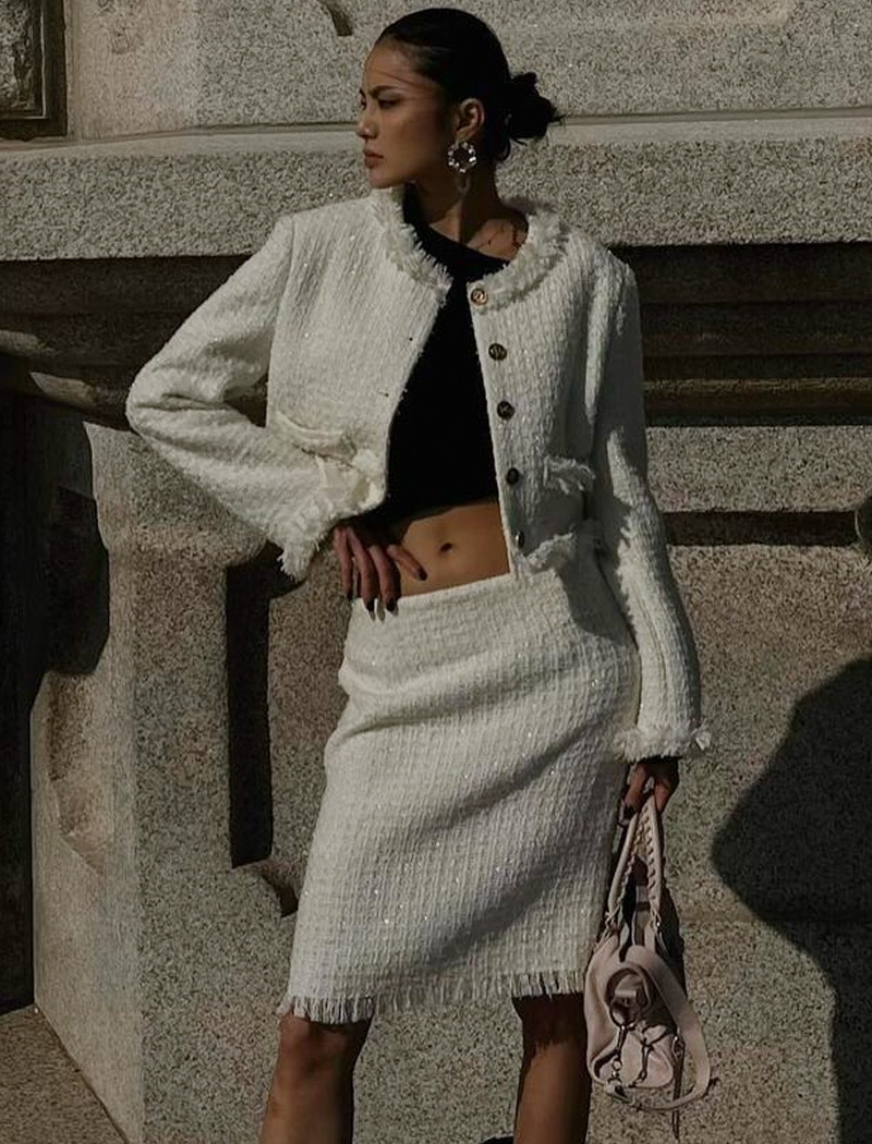 울 프린지 트위드 숏자켓 (화이트 블랙)