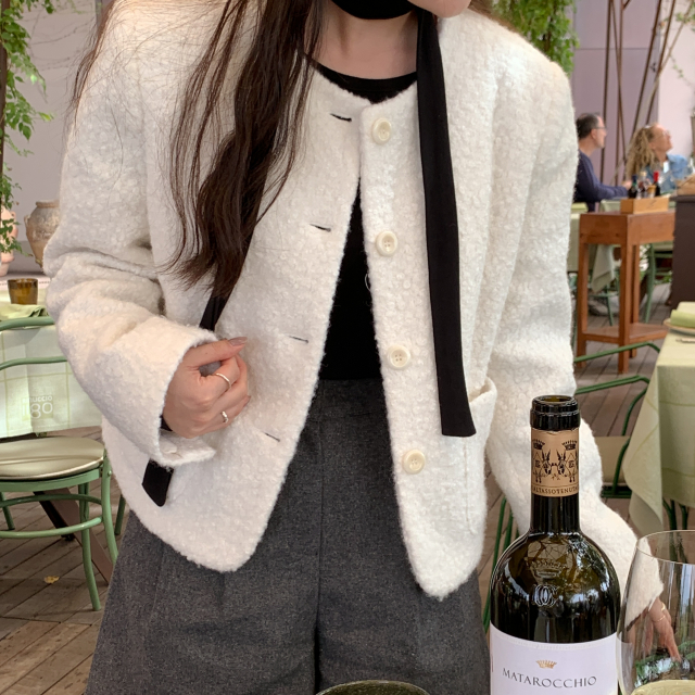 ✨금요일까지 15% SALE ❄️겨울 💕URBANE MADE💕 노엘 봄 크롭 숏 노카라 루즈핏 부클 자켓 트위드자켓 /겨울하객룩/데이트룩/여행룩/삿포로