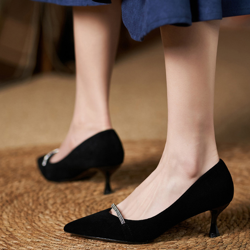220-260 아펜트 3,5,7cm 스웨이드 큐빅 펌프스 힐 구두 1color