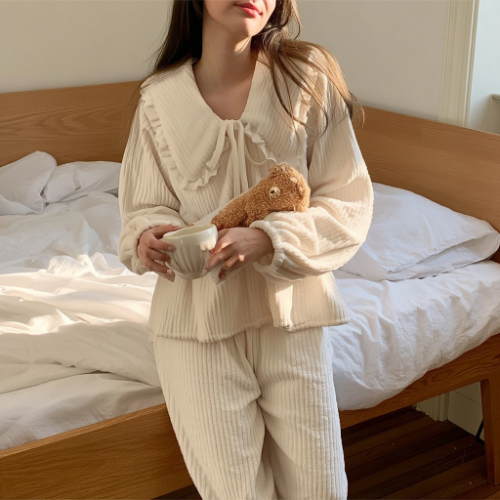 빅카라 극세사 수면 잠옷 겨울 긴팔 기모 여성 공주 빅사이즈 파자마 투피스 세트 실내복
