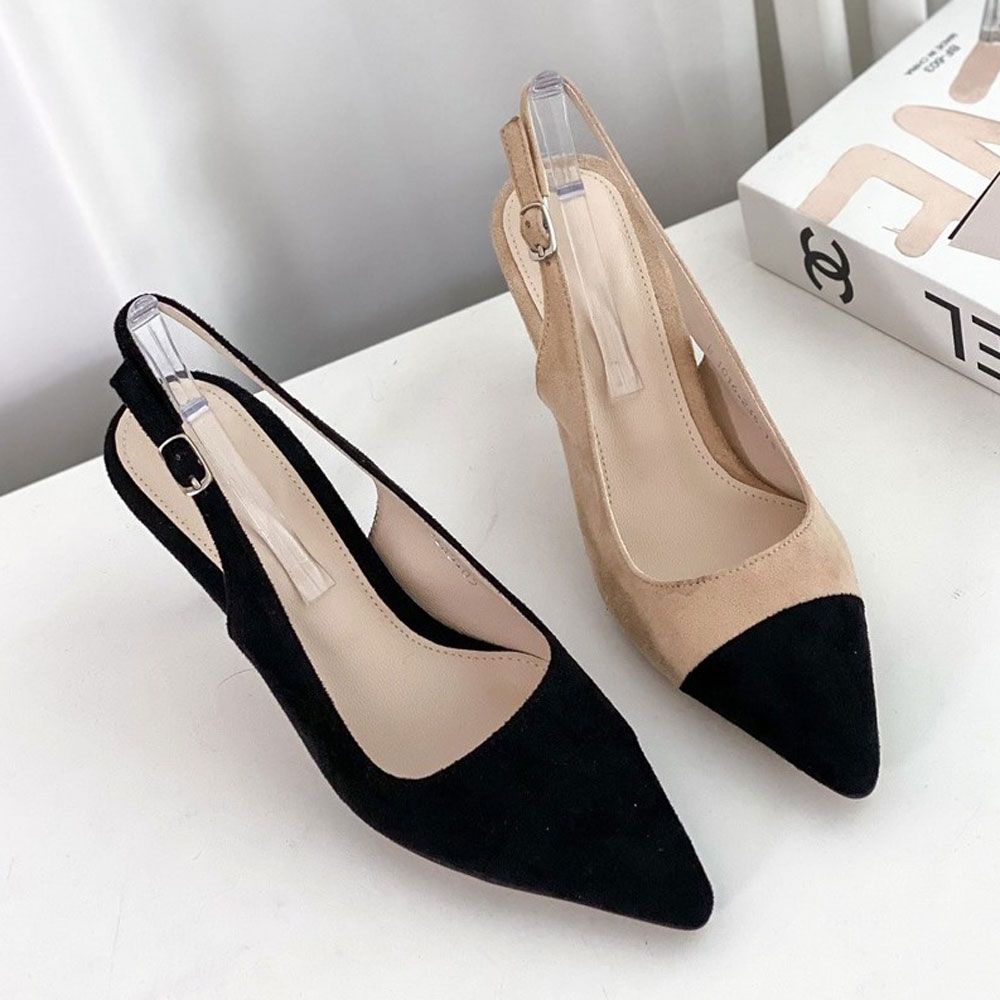편한슬링백 슬링백신발 슬링백슈즈 스틸레토 스웨이드 슬링백 배색 투톤 미들힐 구두 여성슬링백구두 슬링백구두