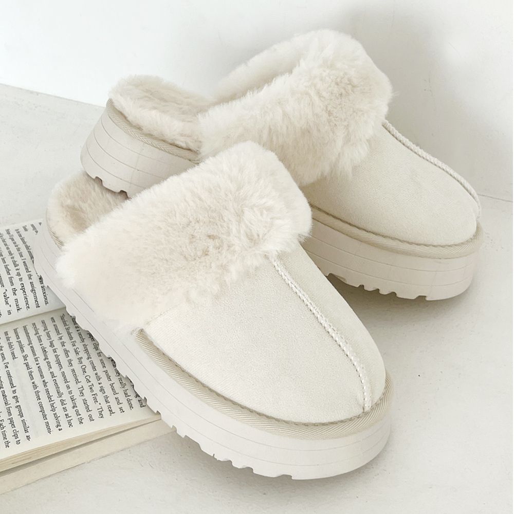 ❤️주문폭주-당일발송❤️두툼한 퍼 털안감 겨울 방한 스웨이드 실비아 사무실화 털실내화 털통굽 털슬리퍼(2color)