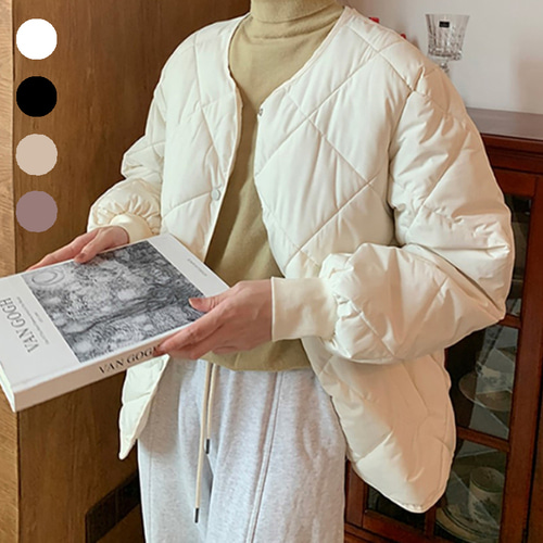 [3컬러/2 사이즈/당일] 다이아몬드 퀼팅 누빔 노카라 경량 패딩 누비 자켓 간절기 아우터 겨울 이너