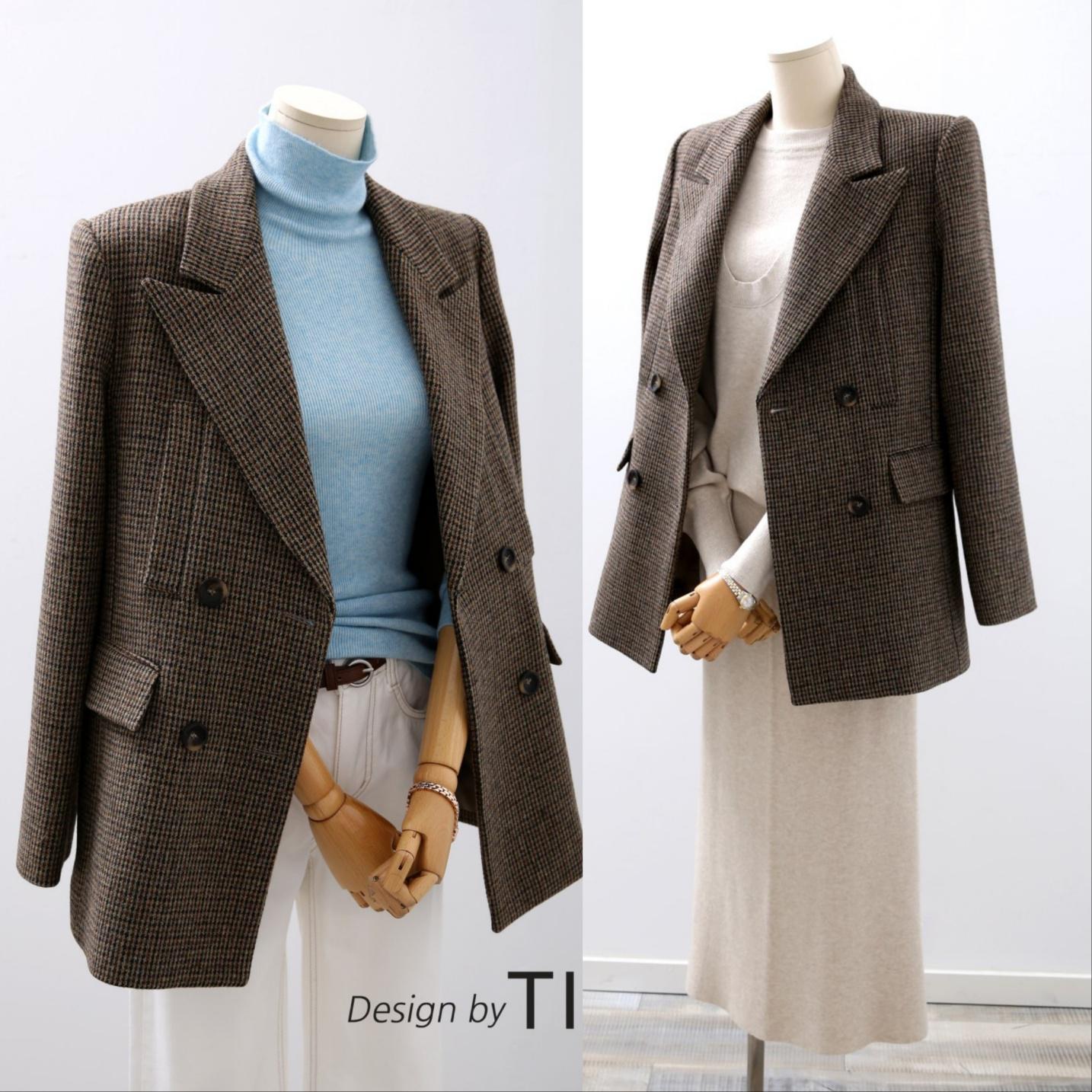 여자울자켓 테일러드 체크 클래식 여성겨울자켓