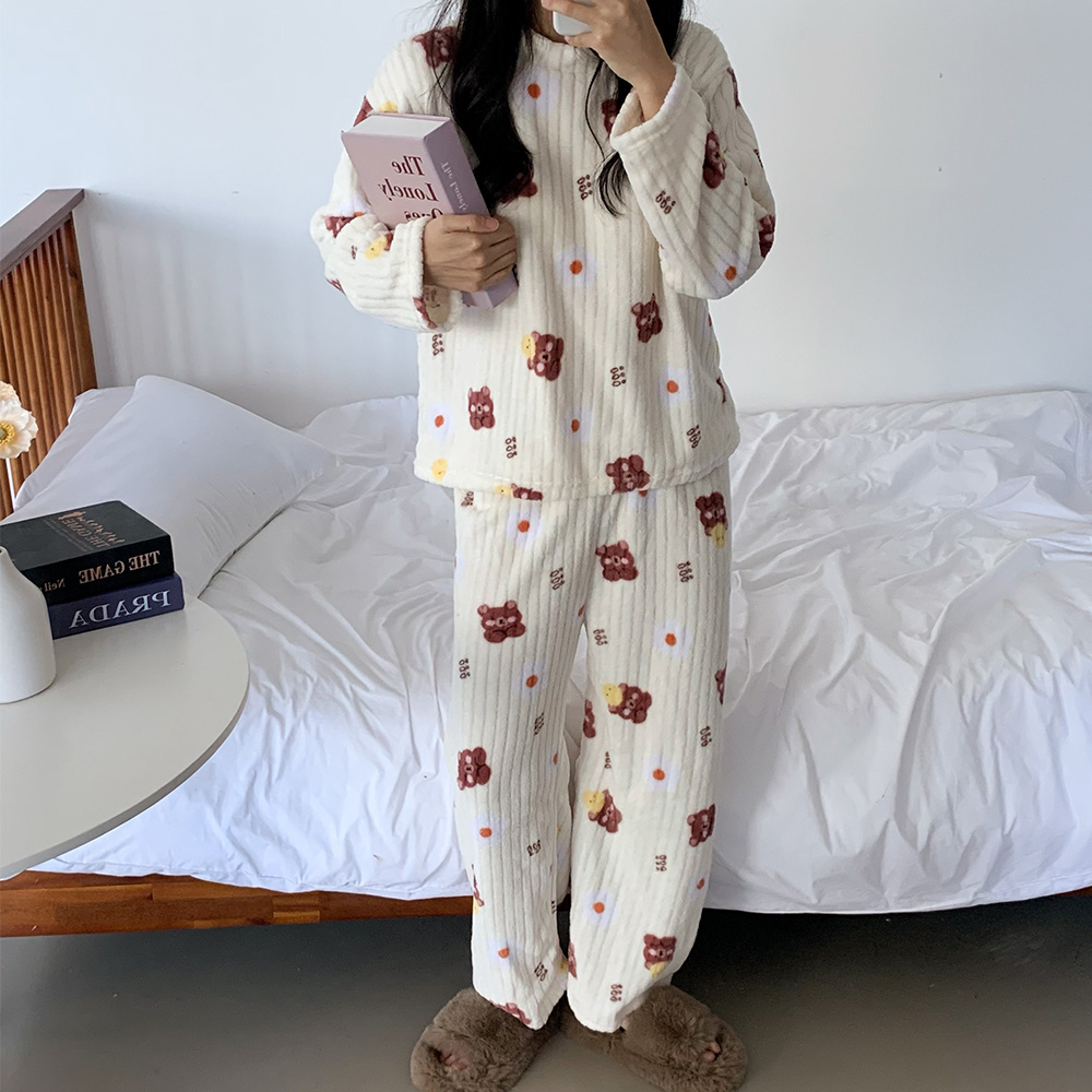 [당일출고] 곰돌이 극세사 수면잠옷 세트 겨울 파자마 홈웨어