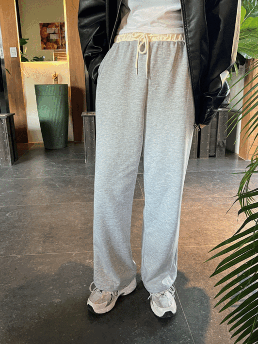 톤앤톤 배색 오비 밴딩 와이드 트레이닝 코튼 팬츠 (3color)