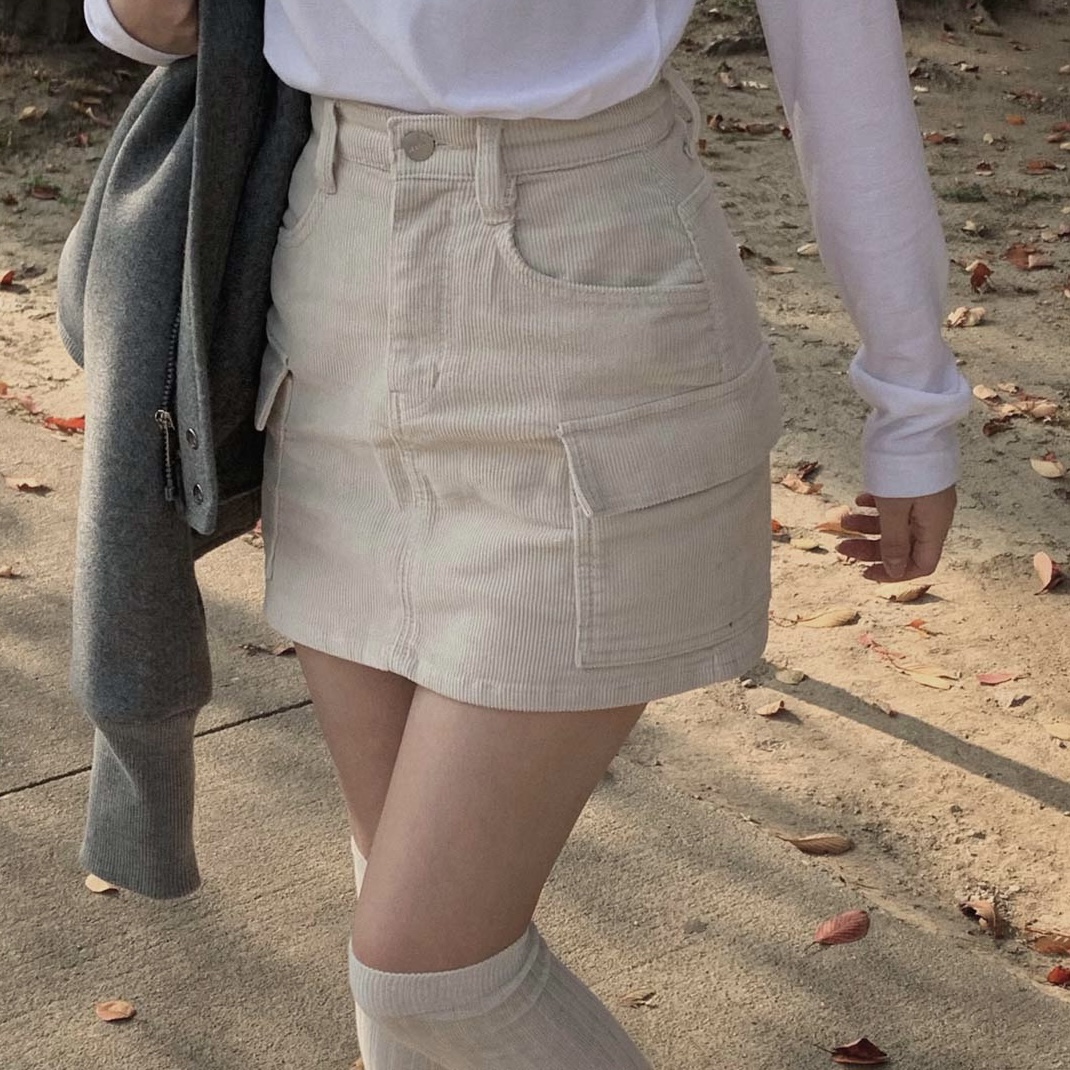 크리미 코듀로이 카고 미니 스커트 - sk