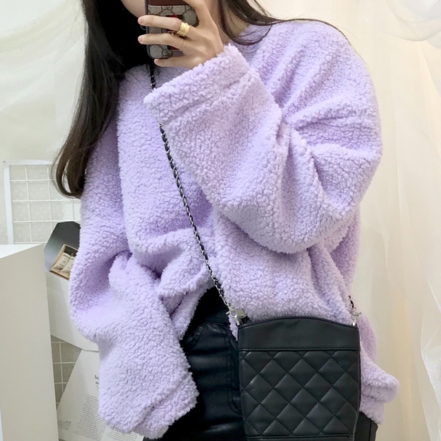 [세일*] 뽀글이 포근 양털 오버사이즈 박시 맨투맨 ( 오버핏 빅사이즈 티셔츠 겨울옷 77사이즈 통통녀 코디 털맨투맨 퍼맨투맨 연보라색 퍼니트 털니트 박스 박시핏 귀여운 )