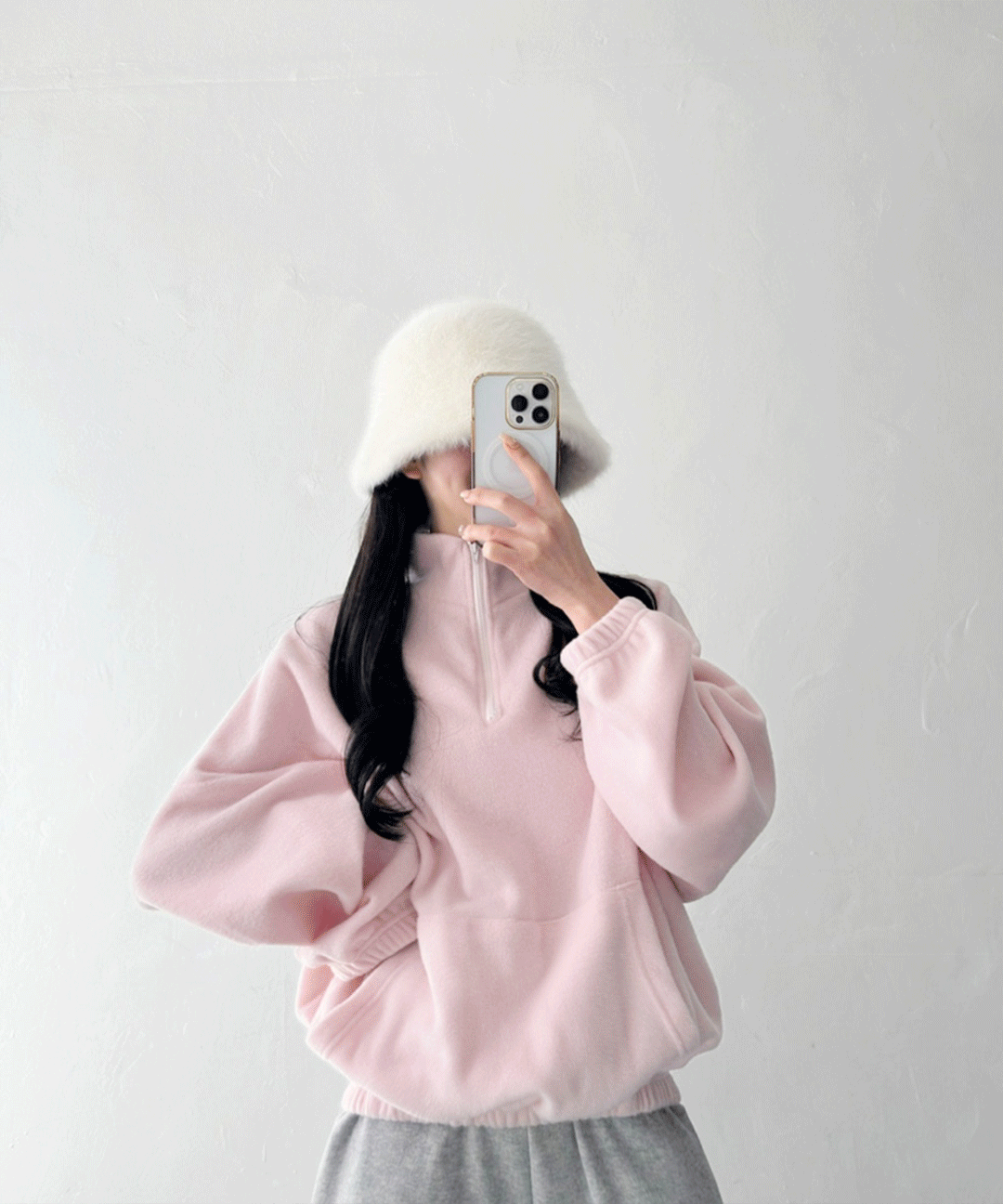 [귀여워요🧸/아방핏]폭닥 반집업 후리스 포켓 주머니 시보리 밴딩 고무줄 집업 하이넥 딸기우유 부들 데일리 꾸안꾸 트레이닝 롱 아방핏 루즈핏 뽀글이 넥카라 맨투맨