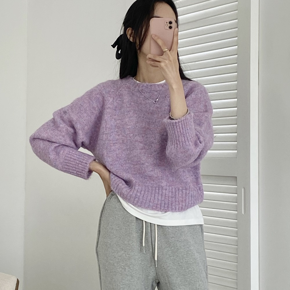 보카시 울 연보라 민트색 라벤더 민트 크롭 여자 겨울 니트 티