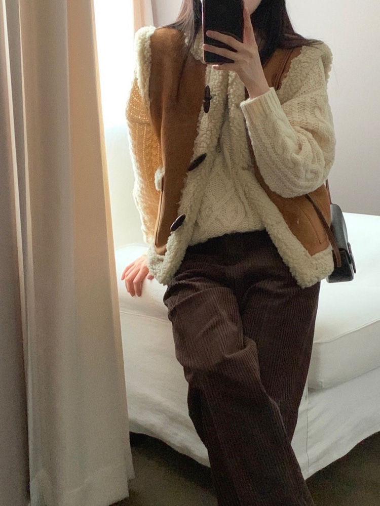무아 양털 뽀글이 시어링 토글 버튼 무스탕 조끼 베스트 2color