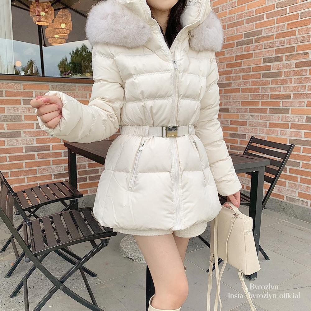 리얼 사가폭스 퍼 덕다운 벨트 패딩 3color