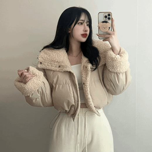 *오픈특가* 양면 리버시블 투웨이 양털 크롭 숏 패딩
