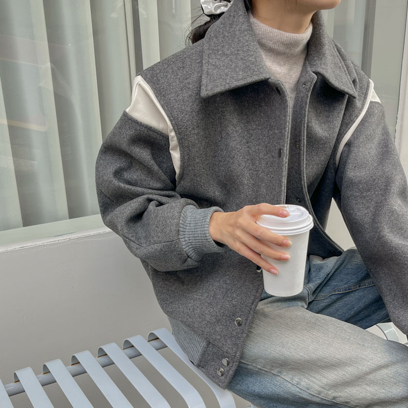 [MD추천/울] 겨울 스타디움 바시티 울 레더 배색 블루종 점퍼 (2 color)