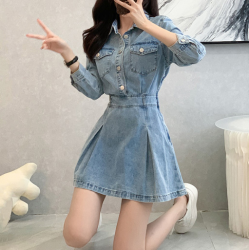 니키데님 셔츠원피스 데님 슬릿 미니 스커트