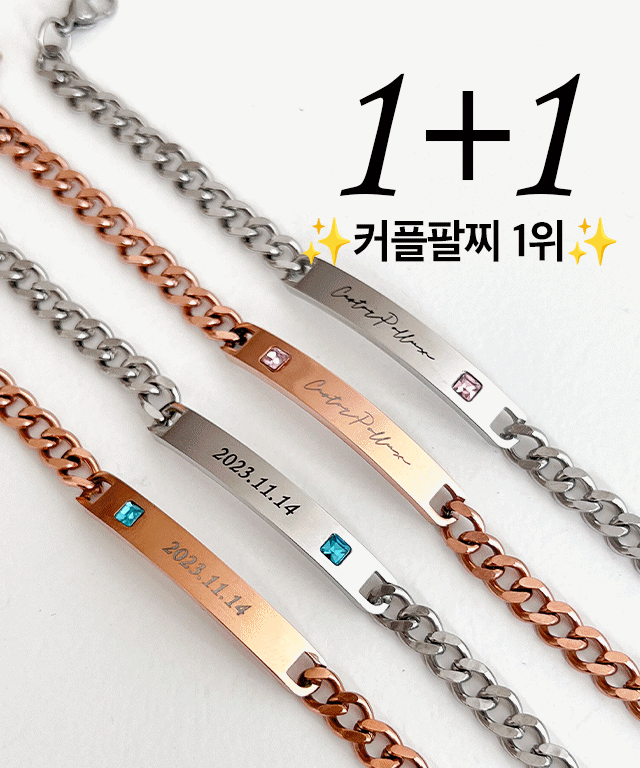 (1+1/오늘출발) 큐빅 각인 팔찌 써지컬스틸 커플.우정 각인팔찌