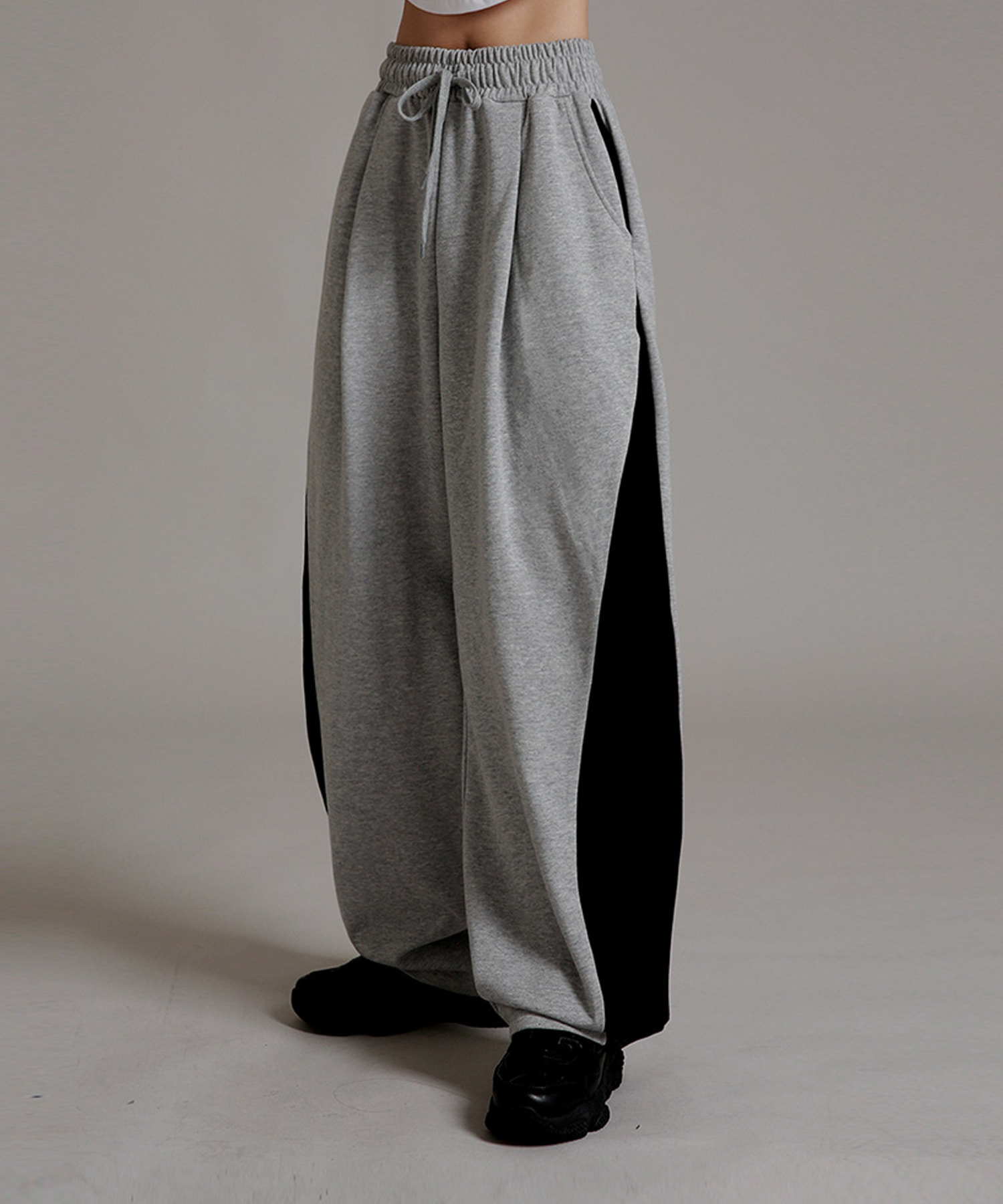 트레이닝 핀턱 배색 와이드 팬츠 멜란지