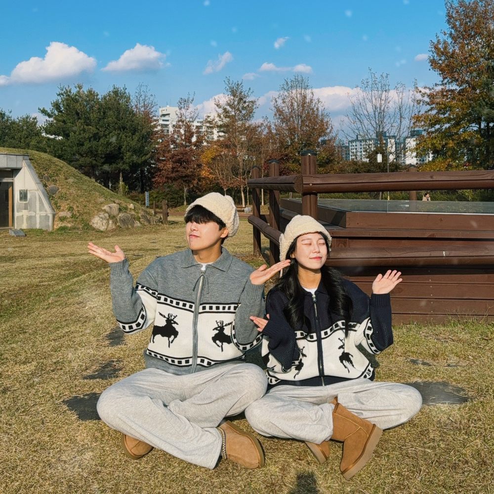 주문폭주🚀겨울 노르딕 루돌프 사슴 카라 니트 집업 크리스마스 커플 시밀러룩 2컬러
