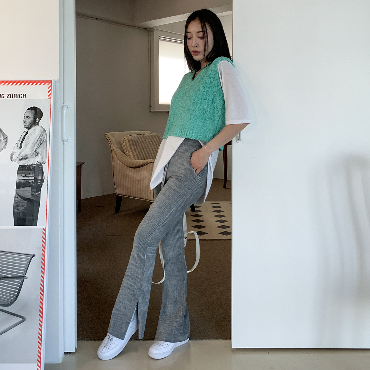 베데스 허리 밴딩 벨벳 골지 부츠컷 팬츠