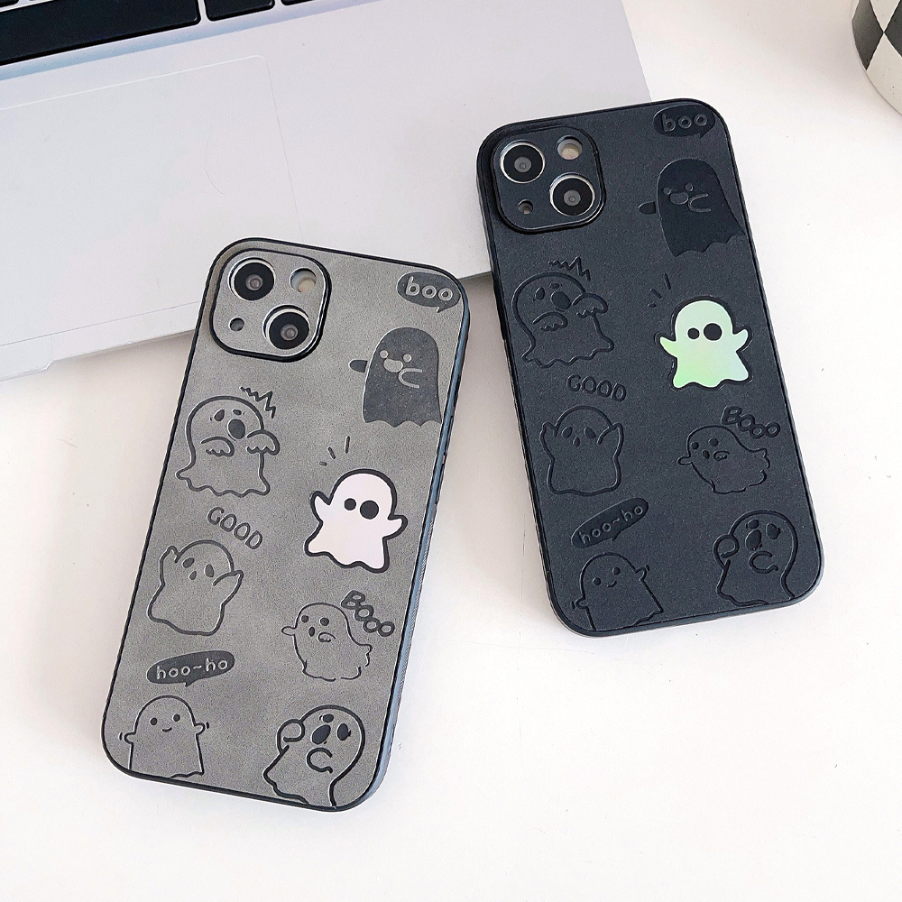 유령 캐릭터 홀로그램 패턴 스웨이드 실리콘 범퍼 아이폰15 아이폰14 아이폰13 아이폰12 아이폰11 프로 맥스 카메라 풀커버 케이스