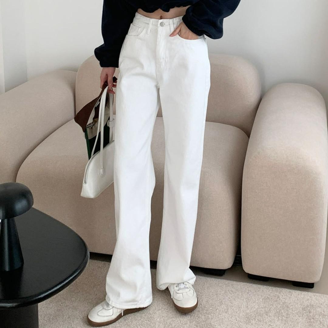 기모 흰바지 겨울 기모 통바지 와이드팬츠