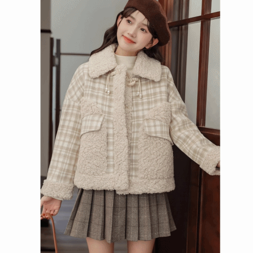 [겨울신상/겨울자켓]양털 스웨이드자켓 체크 모직 숏코트 떡볶이코트 떡코 아이보리 무스탕 에코퍼 양털 뽀글이 안감 하프 미디 반코트 20대 30대 하객룩 출근룩 데이트룩