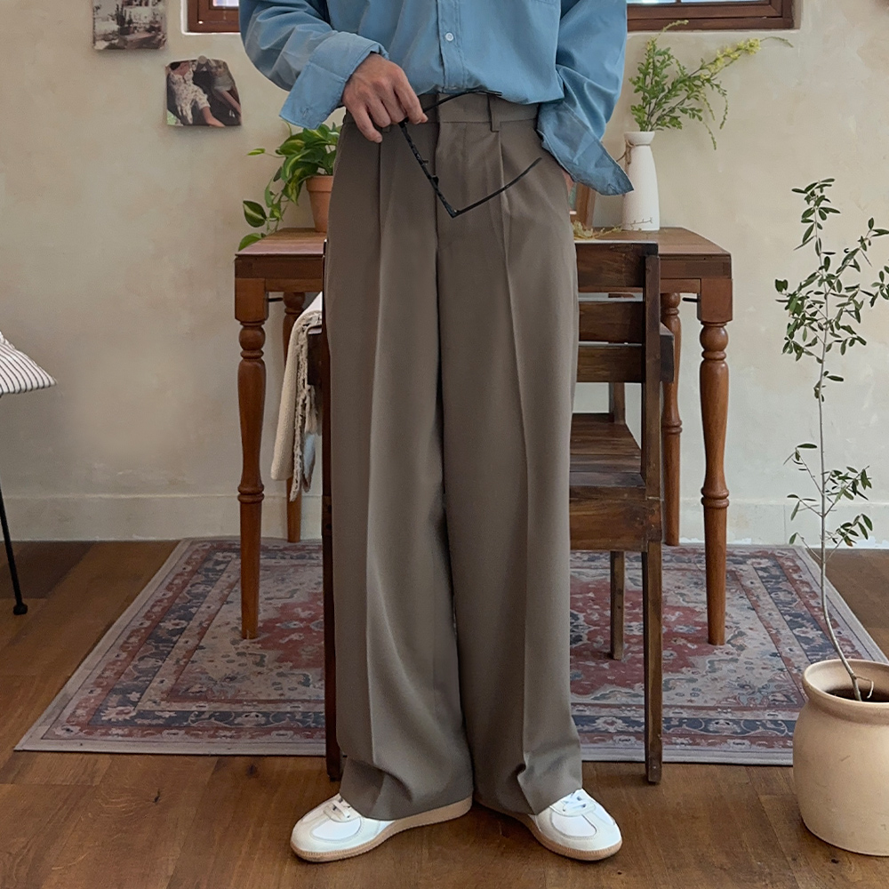 밴딩 핀턱 와이드 슬랙스 통큰바지 통넓은 구김없는 바지 와이드핏 링클프리 뒷밴딩 와이드팬츠