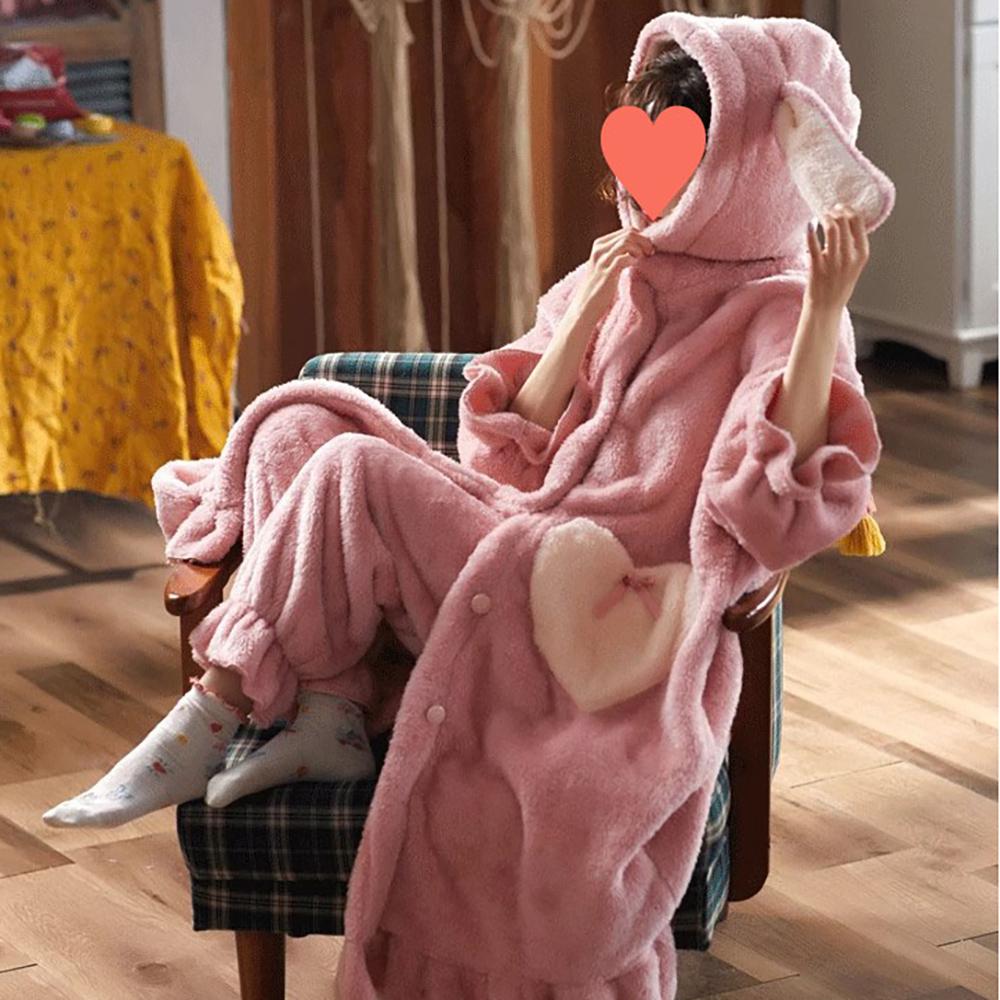 티티리 겨울 후드 토끼 동물 잠옷 여성 마약 수면 바지 기모 가운 파자마 극세사 잠옷