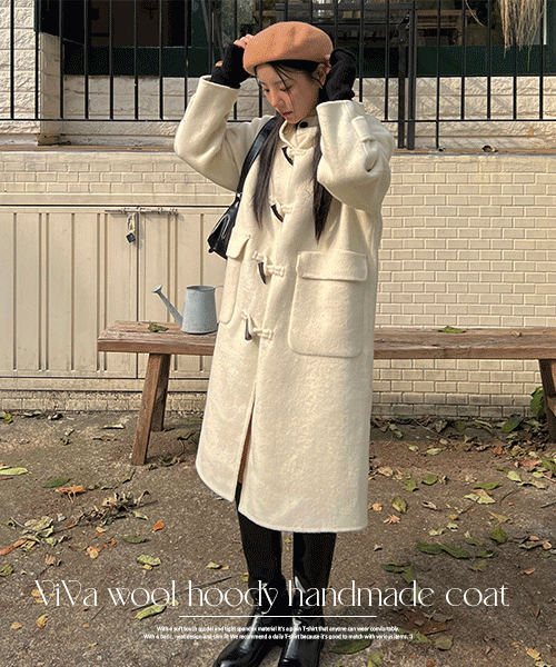 비바 울 70 떡볶이 토글 버튼 후드 롱 핸드메이드 코트