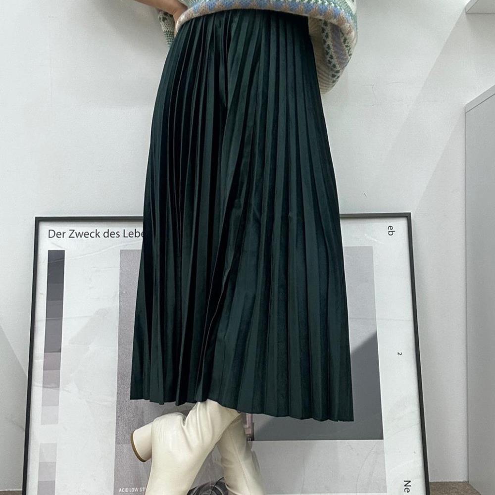 여자 아코디언스커트 a라인 주름 진초록 세무 치마