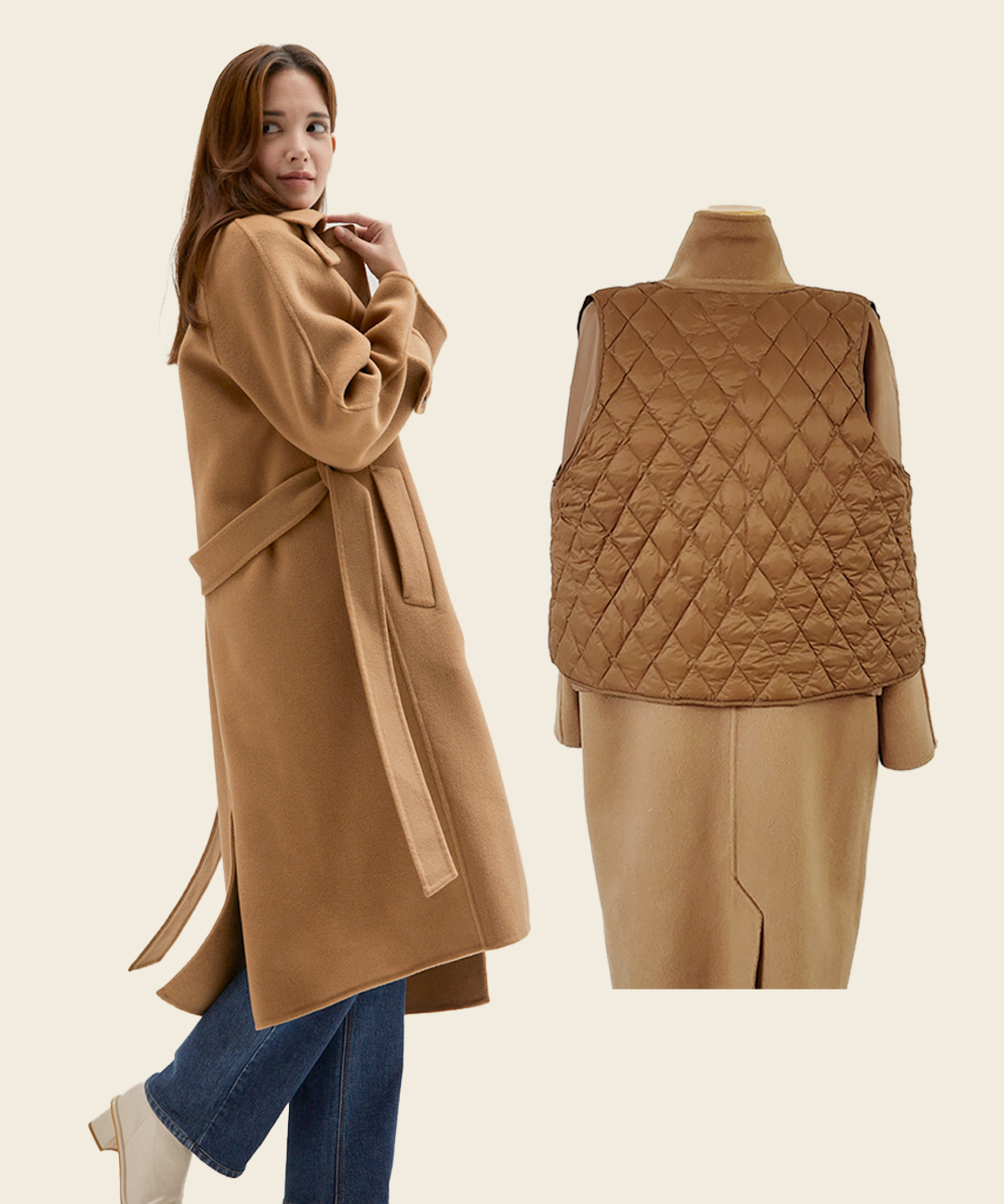 2in1 캐시미어 핸드메이드 코트 + 구스다운 (카멜)