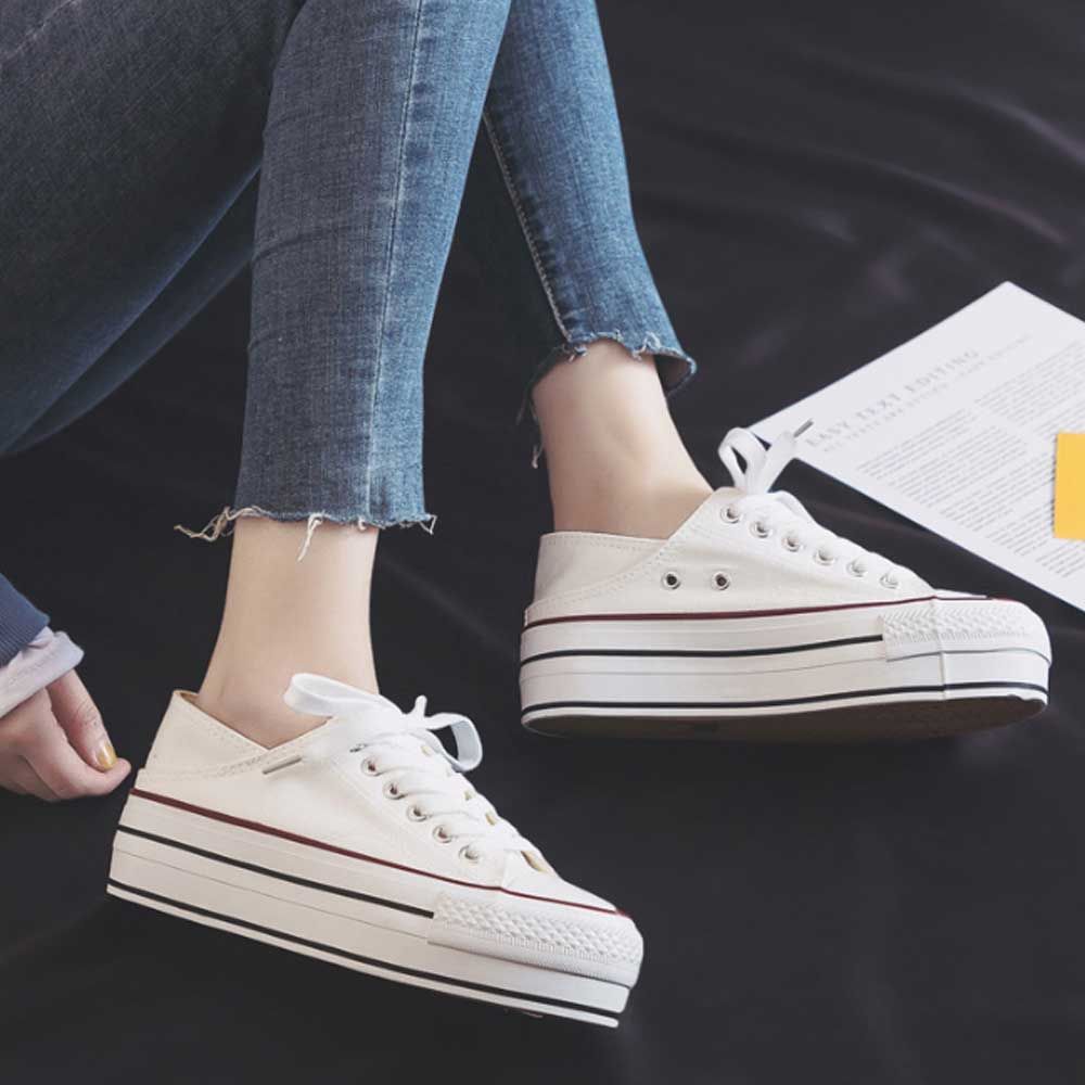 여자하얀운동화 여름운동화여성 여성 데일리 슈즈 단화 하얀 스니커즈 나들이 패션화 뮬스니커즈운동화뮬 발편한스니커즈 캔버스블로퍼