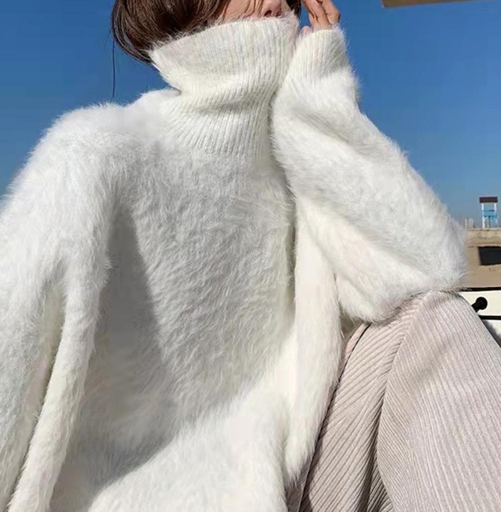 알라 여성 겨울 베이비핑크 인디핑크 핑크 코발트블루 하늘색 소라색 라벤더 보라색 목폴라 터틀넥 폴라넥 앙고라 날개사 니트 털니트 목티